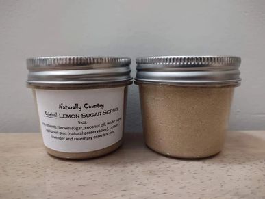 Ingredients: brown sugar, coconut oil, white sugar, optiphen plus (natural preservative), lemon, lavender and rosemary essential oils.