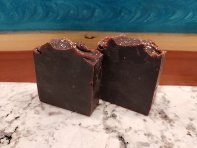 This is a gentle coconut oil and shea butter base soap. It is scented with a "sleepytime" fragrance that has notes of lavender, camomile and vanilla. The fragrance oil darkens the soap to its nice, rich brown color .