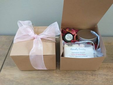 Includes 1 bar of soap, Face scrub or Lotion (your choice) and Lip Balm. Seasonally or Occasion Specific Wrapped.